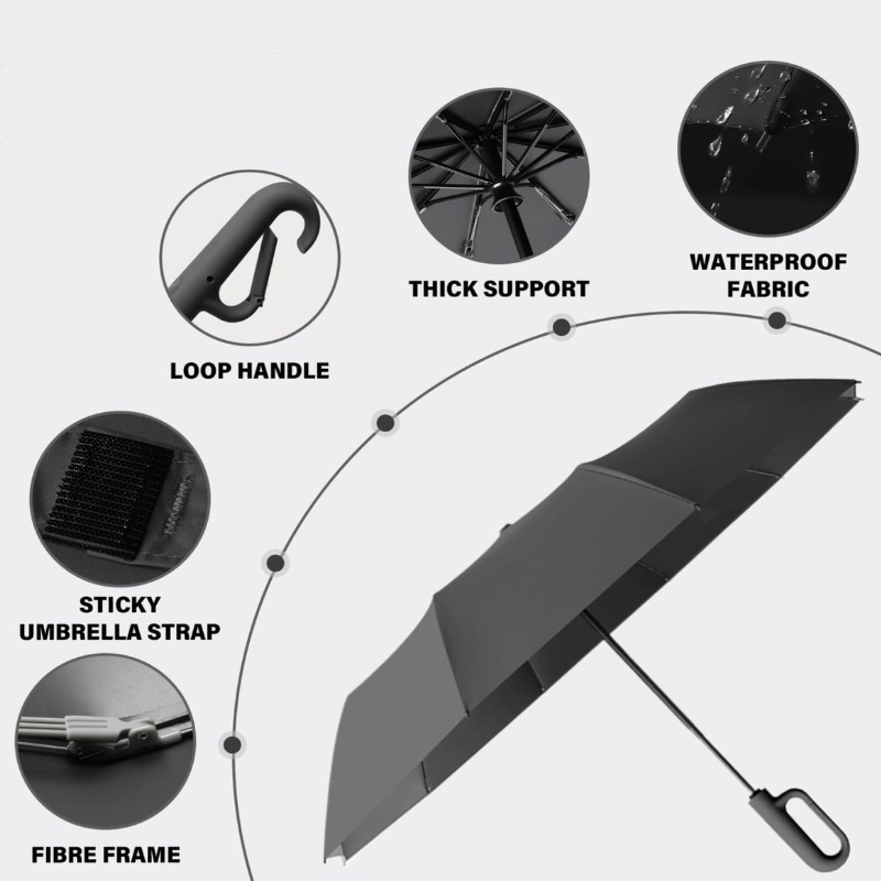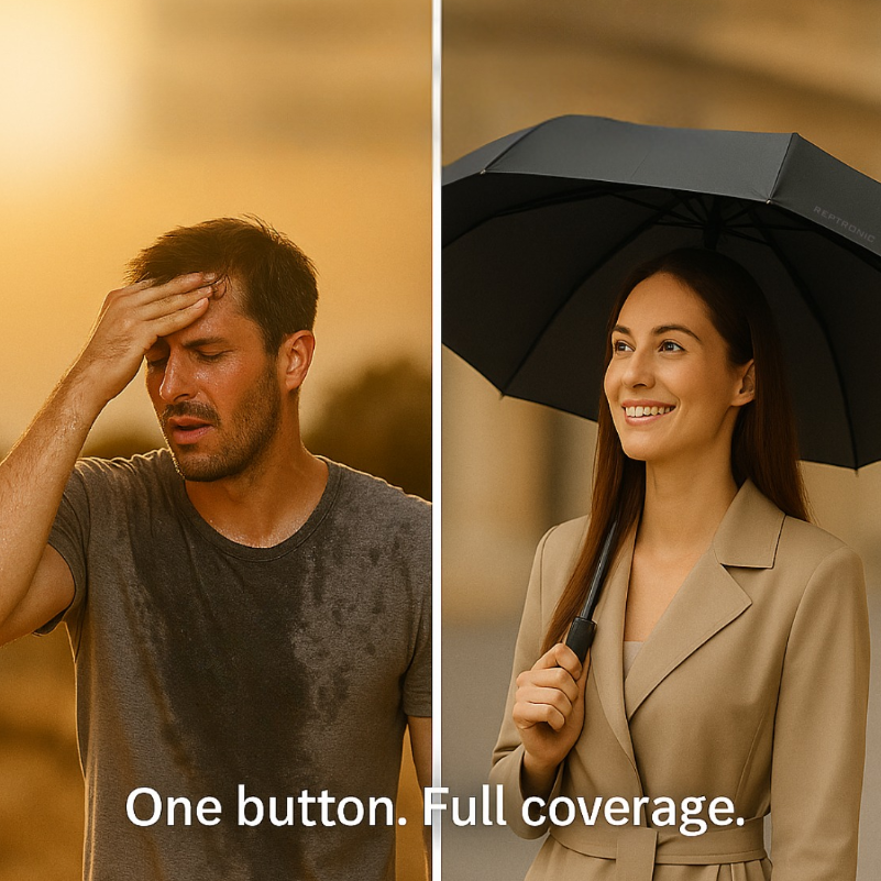 The 8 - Rib Fully Automatic Umbrella is designed to be your dependable companion in any weather. With a 72-bone ring storm design, reinforced triple-keel frame, and thick fiberglass ribs, it delivers unmatched stability and durability. Whether facing a downpour, strong winds, or harsh UV rays, the Reptronic 8 - Rib Fully Automatic Umbrella offers premium protection with style.