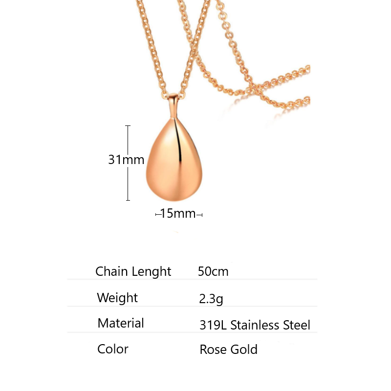 Cherish your loved ones and keep their memory close to your heart with this elegant and meaningful cremation jewellery piece. The teardrop-shaped pendant, finished in a stunning rose gold hue, is crafted from premium 316L stainless steel for unmatched durability and timeless beauty.