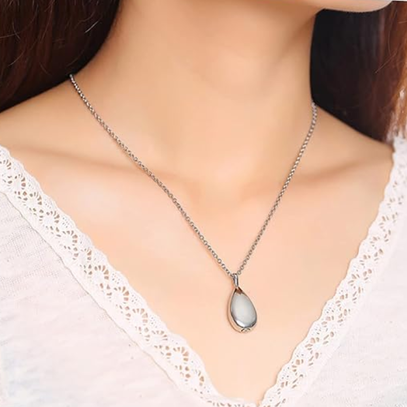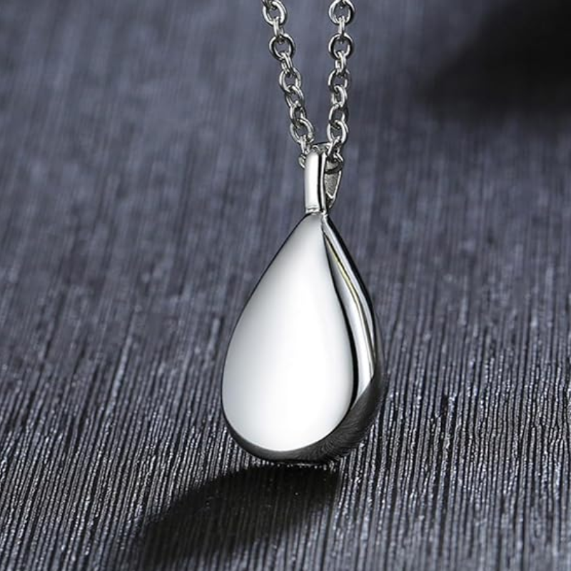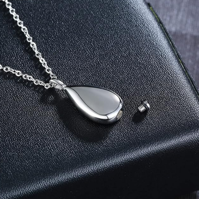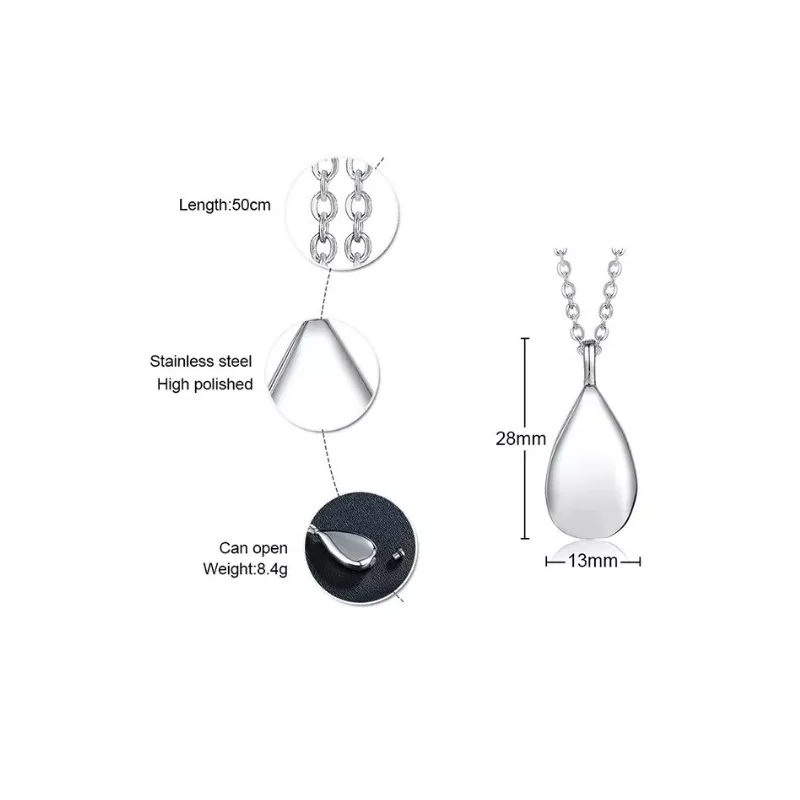 The Memorial Keepsake Pendant is a delicate and meaningful piece of cremation jewelry, beautifully designed to honor and cherish your loved ones. Featuring a timeless teardrop shape in a sleek silver finish, this pendant is crafted with premium 316L stainless steel, offering durability, comfort, and long-lasting shine.