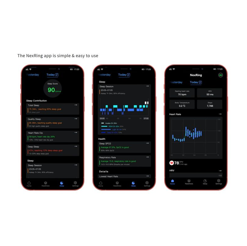 - Sync your data effortlessly to the companion app via Bluetooth 5.1. Compatible with iOS (11+) and Android (6.0+)- Nexring app