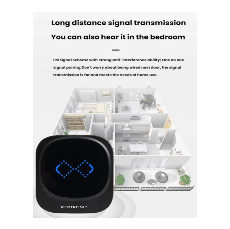 Enhance your home with the RPTDB46, a premium self-powered wireless doorbell that combines advanced functionality with sleek aesthetics. Designed for reliability in all environments, this doorbell is built to perform-rain or shine, storey by storey.