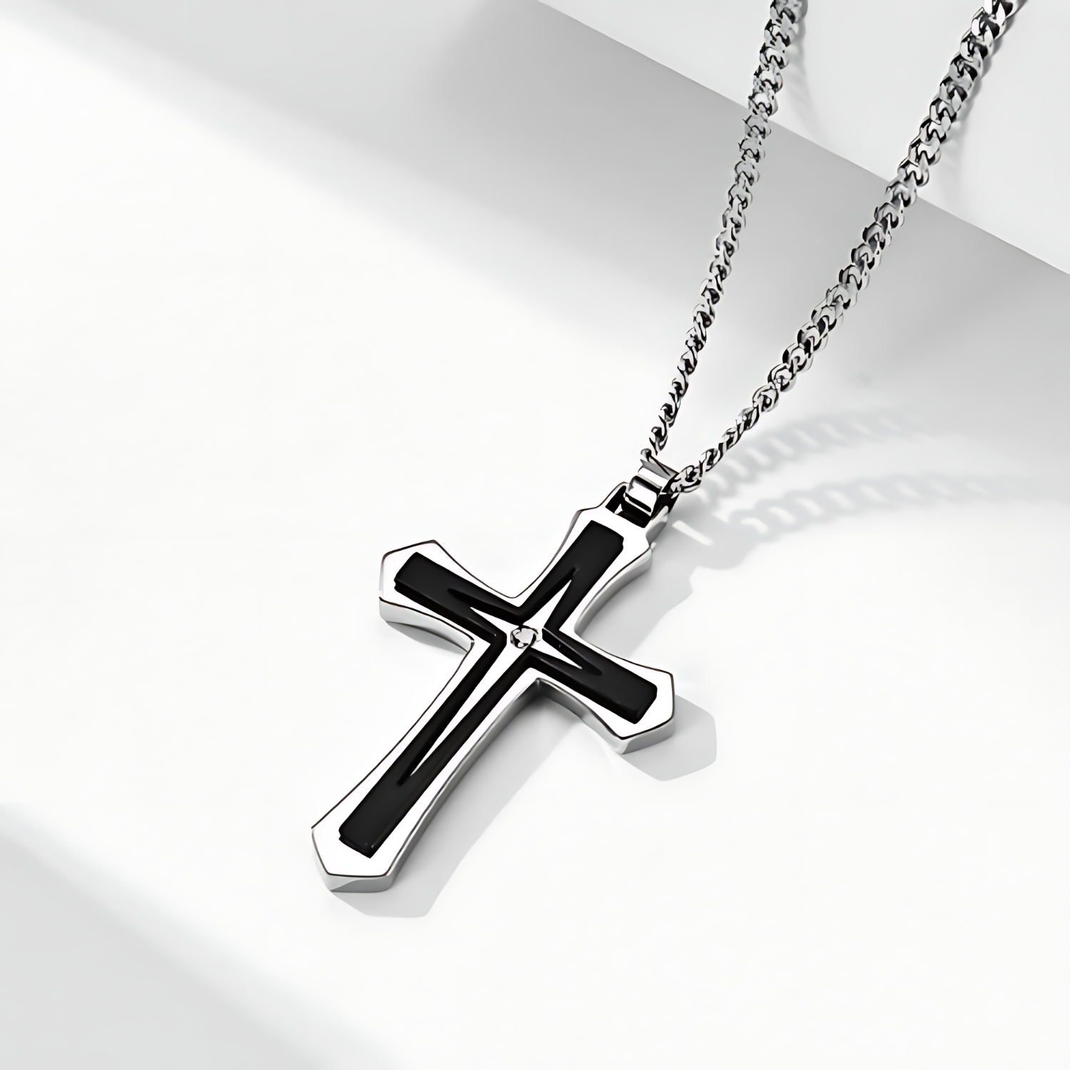Memorial Black and Silver Cross with Zirconia Stone Pendant – A Timeless Tribute to Cherish Forever