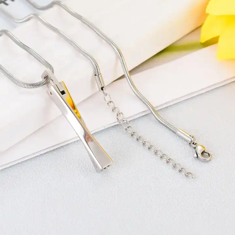 Memorial Safe Keeping Pendant - Stainless Steel Twisted Modern Bar- Black